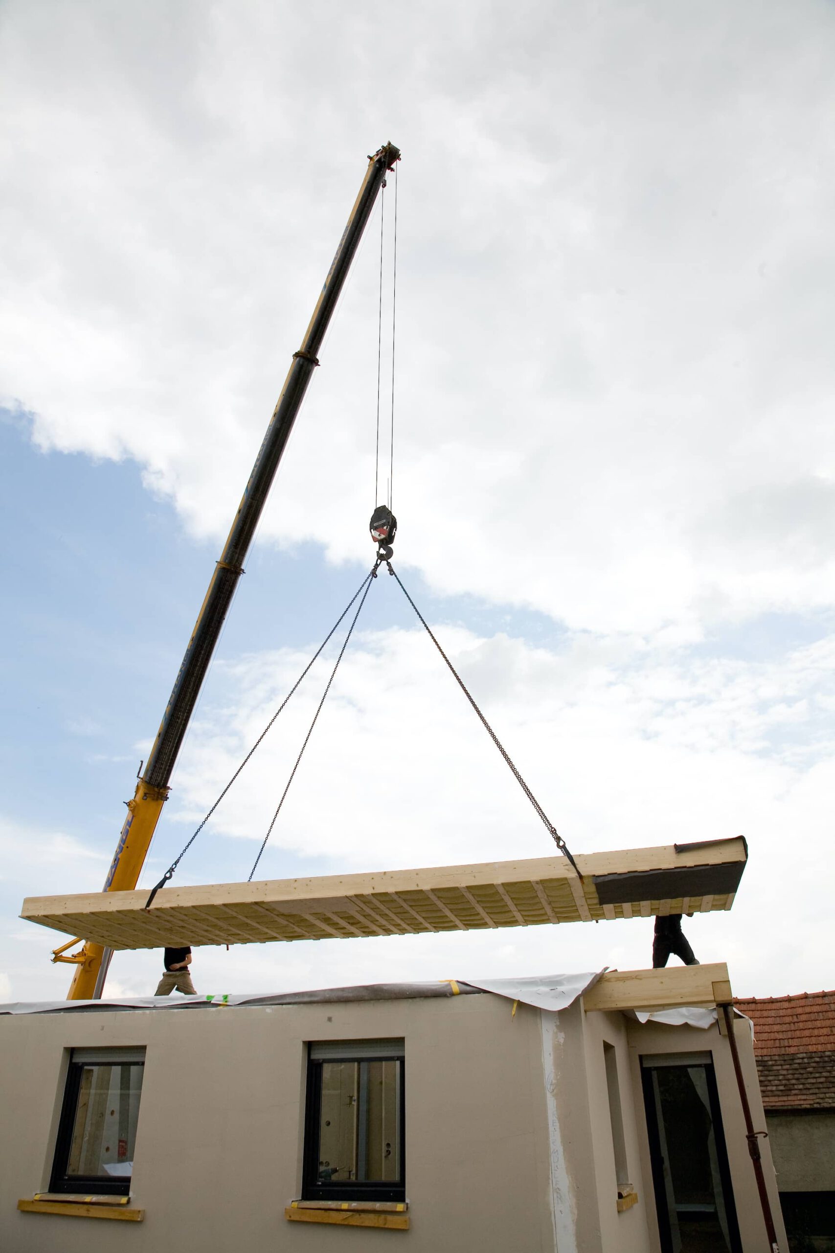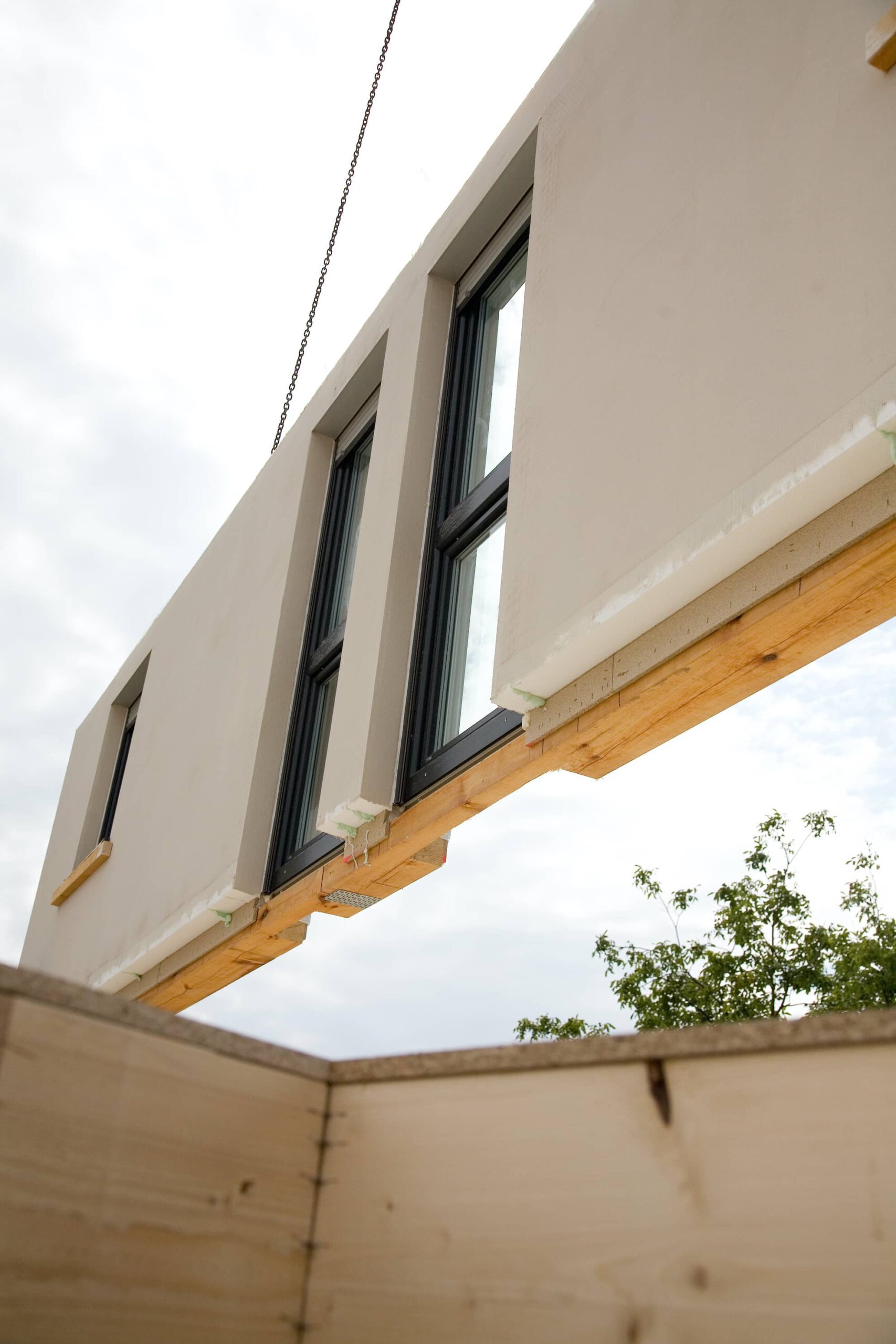 Nach der Fertigung erfolgt der Transport zu Ihrem Grundstück. Unser erfahrenes Team montiert Ihr Fertighaus schnell und effizient, sodass Sie rasch in Ihre neue Umgebung einziehen können.